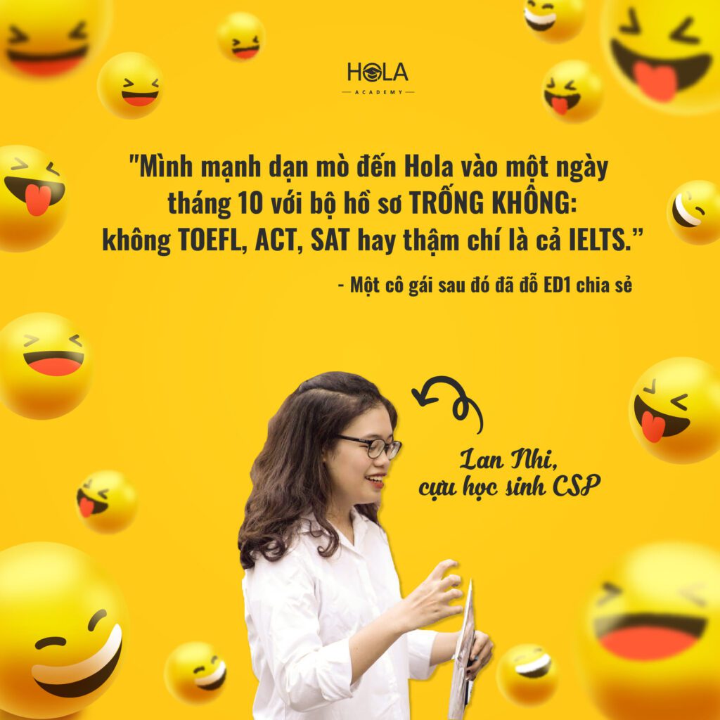 “Mình mạnh dạn mò đến Hola vào một ngày tháng 10 với bộ hồ sơ TRỐNG KHÔNG: không TOEFL, ACT, SAT hay thậm chí là cả IELTS.” 😧 – cô bé Nguyễn Ngọc Lan Nhi, cựu học sinh trường THPT Chuyên Sư Phạm “hạ quyết tâm” đi du học Mỹ chỉ vỏn vẹn 20 ngày […]