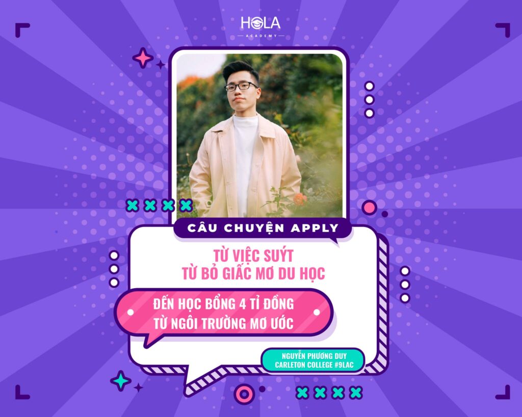 Trong những tháng vừa qua, Nguyễn Phương Duy – chàng trai với niềm đam mê khoa học đặc biệt và là học sinh apply khóa 2020 của HOLA – đã cùng gia đình và bạn bè ăn mừng gói học bổng 4 tỷ đồng từ Carleton College (Top 9 đại học khai phóng Mỹ và […]
