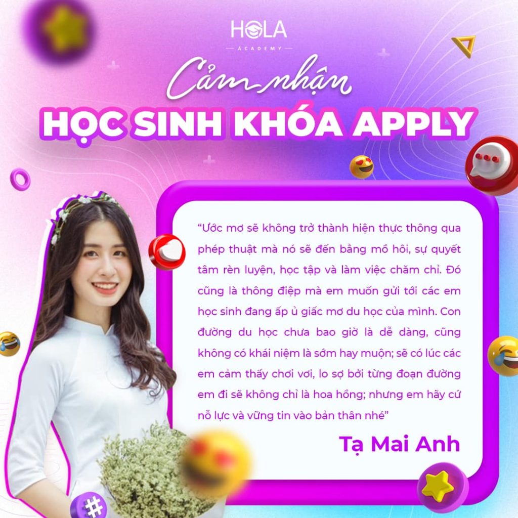 “Trước khi quyết định chọn HOLA làm nơi đồng hành trong quá trình apply Master của mình, em đã đi nghe tư vấn và tham khảo nhiều trung tâm khác nhau. Nhưng chỉ ở HOLA giúp em cảm thấy hồ sơ gốc của bản thân được tôn trọng, không hề gò ép em theo một […]